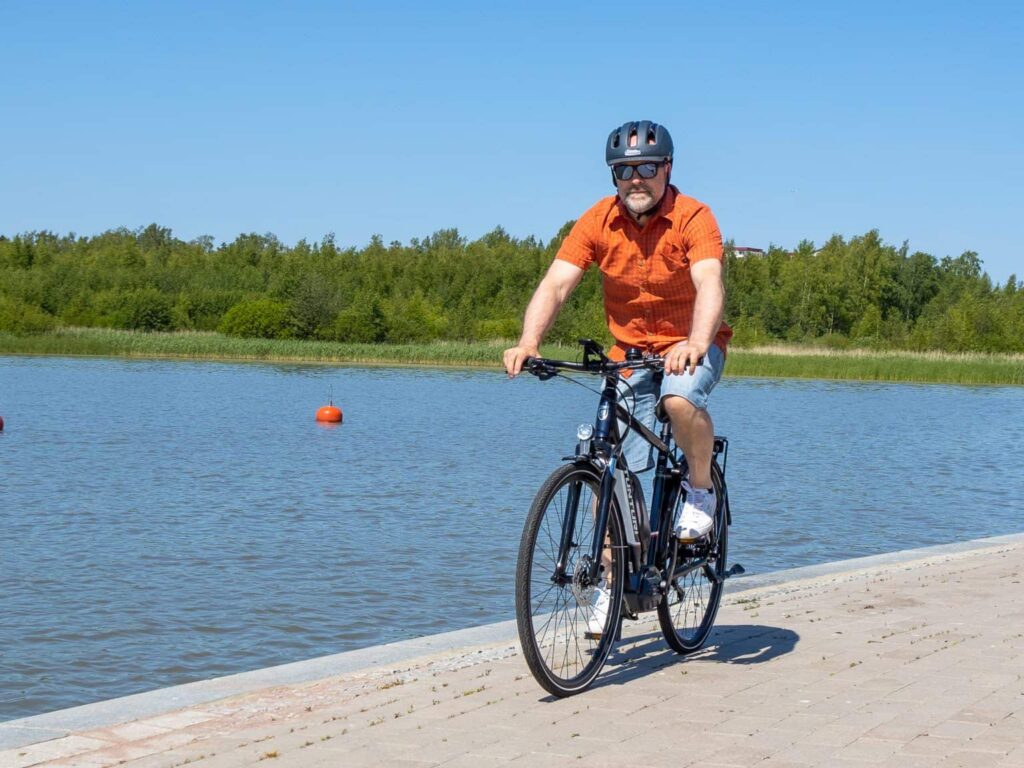 The Tunturi eMotion was put to the test in everyday use. Thanks to its good equipment, it was pleasant to ride to the store — the sturdy kickstand and solid rear rack made it practical for daily errands. The rack’s durability and the bike frame’s strength were tested by giving a ride to the tester’s daughter (40 kg) on the back. The effect on handling and motor assistance was minimal — this is a stable and reliable bike!