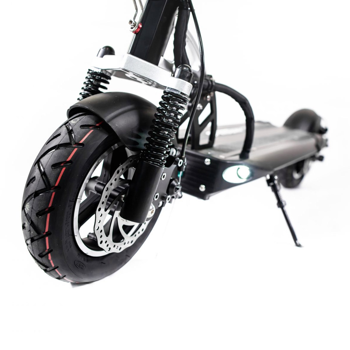 - Dual brakes: disc + electronic